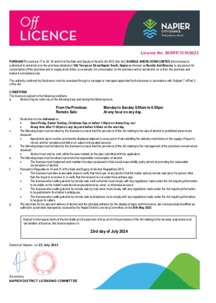 Bundle + Blooms is proud to be an official Licence holder to sell Alcohol in our store and online gift boxes.