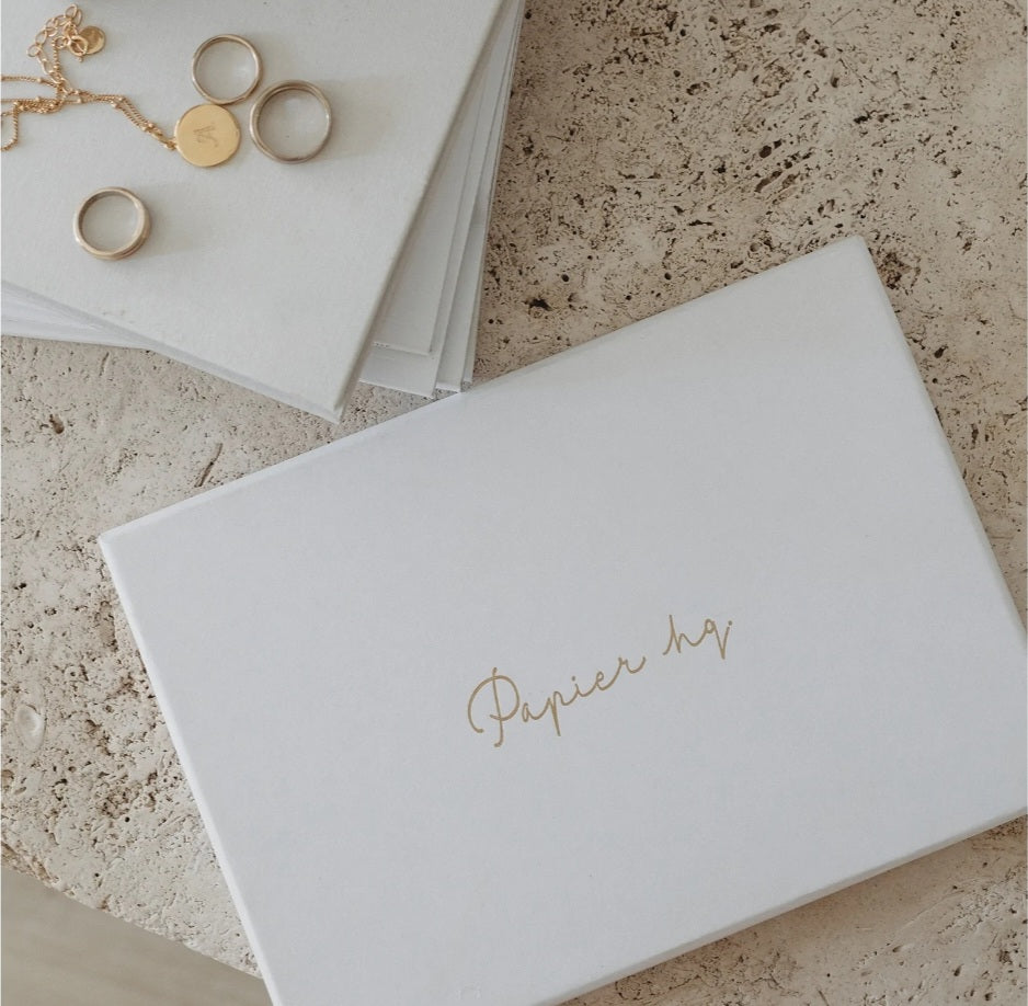 All of our notebooks come packaged in a beautiful white box with gold foil, making them a gorgeous gift for a loved one.